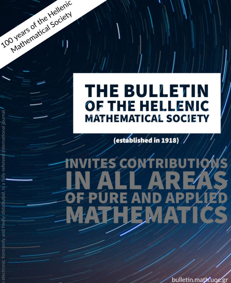 The Bulletin of the Hellenic Mathematical Society (formerly, Bulletin of the Greek Mathematical Society, ISSN: 0072-7466) is a refereed journal, which publishes high quality research articles in all branches of Pure and Applied Mathematics.